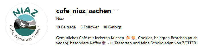 Im Café Niaz am Templergraben 18, direkt an der TH Aachen, heißen wir – Niazwali Ahmadzai und Wolfgang Henze – euch herzlich willkommen.